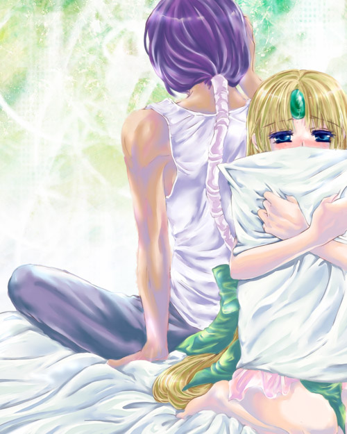 枕を抱いて真っ赤になってるリースが描きたかったのです。