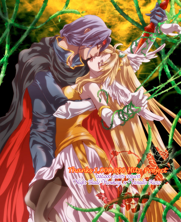 999,996打を踏んでくださったぶらっくぽーくさまからのリクエスト…『ホークアイ(ナイトブレード)×リース(ヴァナディース) グリム童話の茨姫のワンシーン、茨の蔦に囚われた姫(リース)を助けに来る王子(ホークアイ)』です。